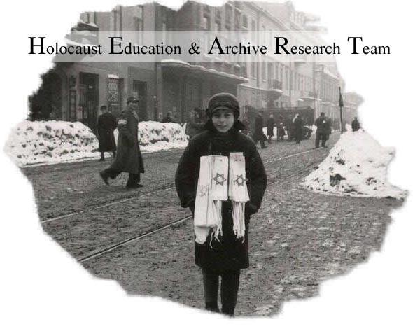 While the subject of the Holocaust has been covered in countless books, archives, editorials, films, and more recently via electronic media; the Holocaust Education & Archive Research Team has chosen to cover a broad range of topics related to the SHOAH with an end goal of bridging the gap as a source of educational information and providing an Internet based memorial to those victims, survivors, and relatives of those who suffered at the hands of the Nazi regime and its collaborators.