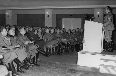 “Gentlemen, if there were ever, after us, a generation so cowardly and so soft that they could not understand our work which is so good, so necessary, then, gentlemen all of National Socialism will have been in vain. We ought, on the contrary, to bury bronze tablets stating that it was we who had the courage to carry out this gigantic task.”