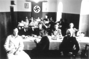 A short distance from the castle several barracks were built, fenced in with a hoarding up to 4m high. An additional 5m screen hid the gas chamber and crematorium. On the first floor of the castle the required amenities were installed; accommodation and offices for doctors, a registry office, a police office, an office for the letters of condolence, and various other departments. Quarters for personnel were on the second floor. The main building of the killing facility was a barrack (68 m long and 7 m wide), which included several rooms. In one of them 100 beds were placed, covered with straw mattresses. A wooden barrack served as the reception centre for arriving patients. Next to it, an old coach house was converted to accommodate the gas chamber; it was disguised as a shower room with showerheads and wooden benches. At first, the chamber had the capacity to gas 40-50 persons at one time; later it was enlarged to hold 75 victims. A small room adjacent to the chamber contained the valves to activate the gassing process. A small window permitted the physician to observe the chamber while he turned the valve. Three buses for the transportation of the victims and an ambulance car stood in a wooden garage. Two mobile oil-fuelled cremation ovens were located in another wooden barrack. Because of the immense heat generated by the round-the-clock cremations, the roof of this barrack was removed, and after a short time the surrounding trees were blackened from the noxious smoke and fumes emitted by the ovens. A former horse stable (circular and 15m in diameter) probably served as a mortuary. At the bottom of the hill, at the access road, a high hoarding and a guardhouse were built. Fences with barbed wire surrounded the whole castle, whilst armed guards with dogs patrolled the perimeter, which bore notices carrying the warning “Danger of Infection.” In mid-November 1939, SS men, typists and other personnel arrived and were supplemented during early January 1940 by approximately 25 male and female nurses. In mid-January the cremation ovens were delivered. On 18 January 1940 the first transport of 25 handicapped men arrived from Eglfing-Haar near Munich, accompanied by the Grafeneck physician-in-chief, Dr Horst Schumann. He had joined the Nazi Part and SA in 1930, and T4 in early October 1939 after a meeting with Viktor Brack in Hitler's chancellery (KdF). In early summer of 1940 Schumann was ordered to the Sonnenstein euthanasia centre. His successor at Grafeneck was Dr Ernst Baumhardt, who was succeeded in turn by Dr Günther Hennecke. The chief administrator was the monstrous Christian Wirth, a detective superintendent and SS-Obersturmführer, who supervised the first gassings at Grafeneck and later was to become the organizer of Aktion Reinhard. A former nurse described a transport from her hospital to Grafeneck: "The evening before the transport was due, we received a list with the names of the patients who were to be picked up. Early in the morning, the buses drove up; the windows were painted gray up to the top. The patients received a slip of paper with a number. Then they filed by one by one, and we wrote the number on their bare back in ink. Because they thought that we were going to transfer them to another institution, they were generally quite calm. Indeed, they did not know what was going to happen to them. Then they were led into the bus... A few weeks later their clothes were sent back from Grafeneck." A former male nurse testified about the gassing procedure at Grafeneck: “I don’t know how long the physician let the gas flow and take effect. I only know that it was according to a precise rule which I am not acquainted with. The doors were opened and the ventilation turned on by one of the male nurses who had seen to locking up the interior. After half an hour or an hour perhaps, I can’t say exactly, these male nurses received the order from the physician to open the doors and turn on the ventilation…. In the beginning it was the physician, wearing a gas mask, who opened the doors… The gas chamber would be left open for a certain time to allow fresh air to circulate. I don’t know now if it was one or two hours. The oven crew was also responsible for transporting the corpses from the gas chamber to the oven.” Theoretically, veterans of the First World War were exempt from euthanasia, especially if they had been awarded medals, had been wounded, or had performed with special valour at the front. In practice, status as a disabled veteran did not always exclude the possibility of being murdered. 58 year-old Karl Rueff, a lieutenant in the reserves who had been awarded an Iron Cross First Class, was institutionalized in south Germany due to a head wound he had suffered in the First World War. His disability pension paid for his institutional care, and he was relatively healthy, suffering only from occasional epileptic seizures. Nevertheless, in 1940 he was transferred to Grafeneck and gassed. The killing continued until December 1940, when Grafeneck ceased to operate because of the hostility of local residents. On 25 November 1940, Else von Löwis of Menar, a member of a Swabian aristocratic family, wrote a letter to the wife of Walter Buch, the presiding judge of the Nazi party court. Von Löwis, an old friend of the Buchs, was an ardent Nazi and a leader of the party's women's movement. In her letter, she expressed the hope that the Buchs would transmit to Hitler her concern that the killing of patients was taxing the loyalty of the population toward the Nazi movement: "Surely you know about the measures currently used by us to dispose of incurable mental patients. Still, you may not fully realize how it is accomplished and the vast scope of the undertaking, nor the terrible impression it leaves with the population! Here in Württemberg the tragedy takes place in Grafeneck on the Swabian Jura, and this place has thus acquired an ominous reputation." The events in Gr