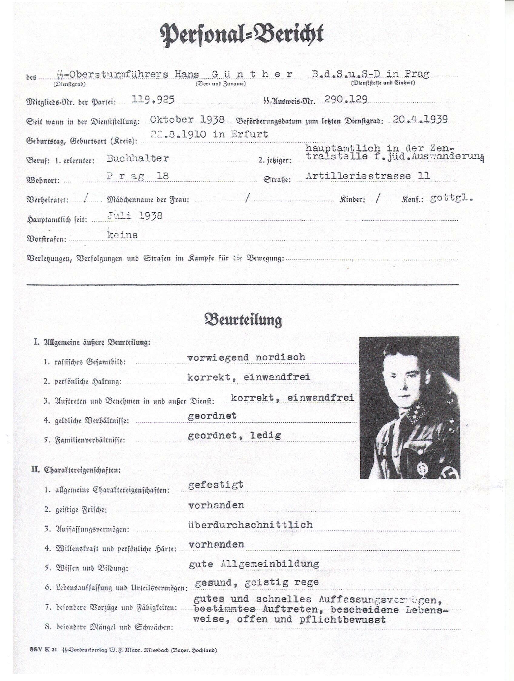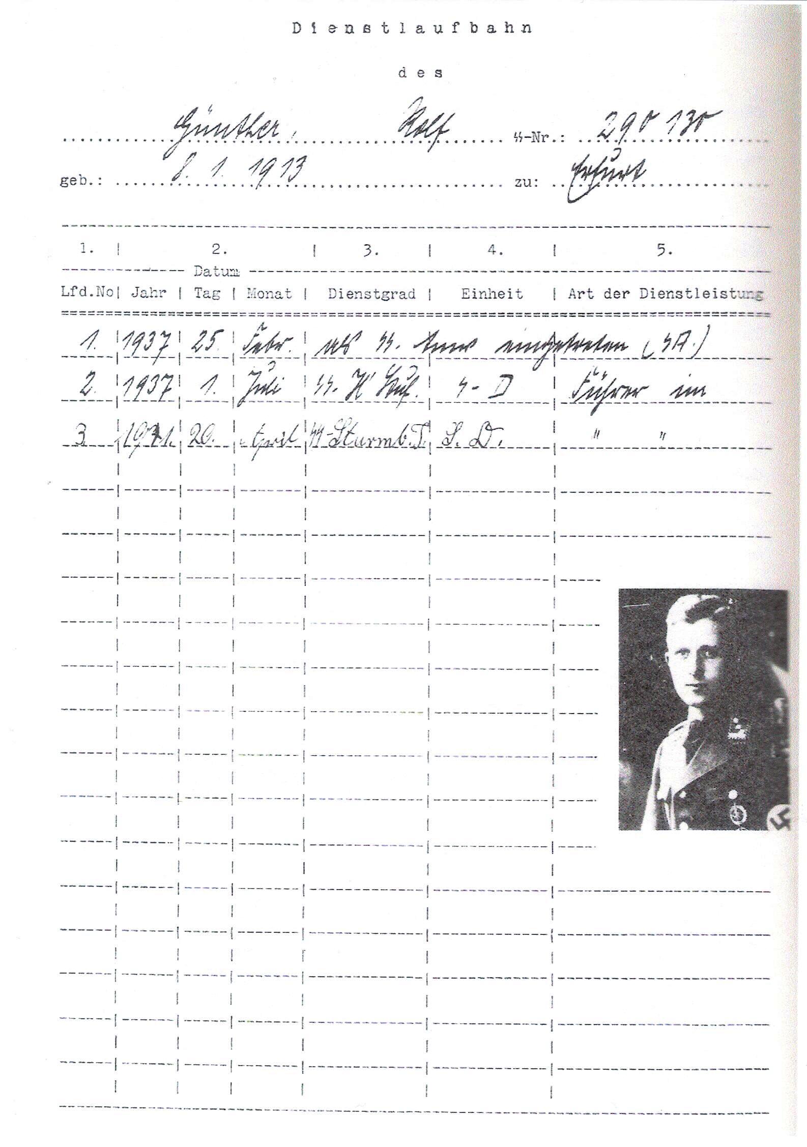 SS- Sturmbannfuhrer Born 22 August 1910 in Erfurt, he served in the Central Office for Jewish Emigration in Vienna and Prague. His brother Rolf served in the same department. Gunther was killed by Czech partisans on 5 May 1945.