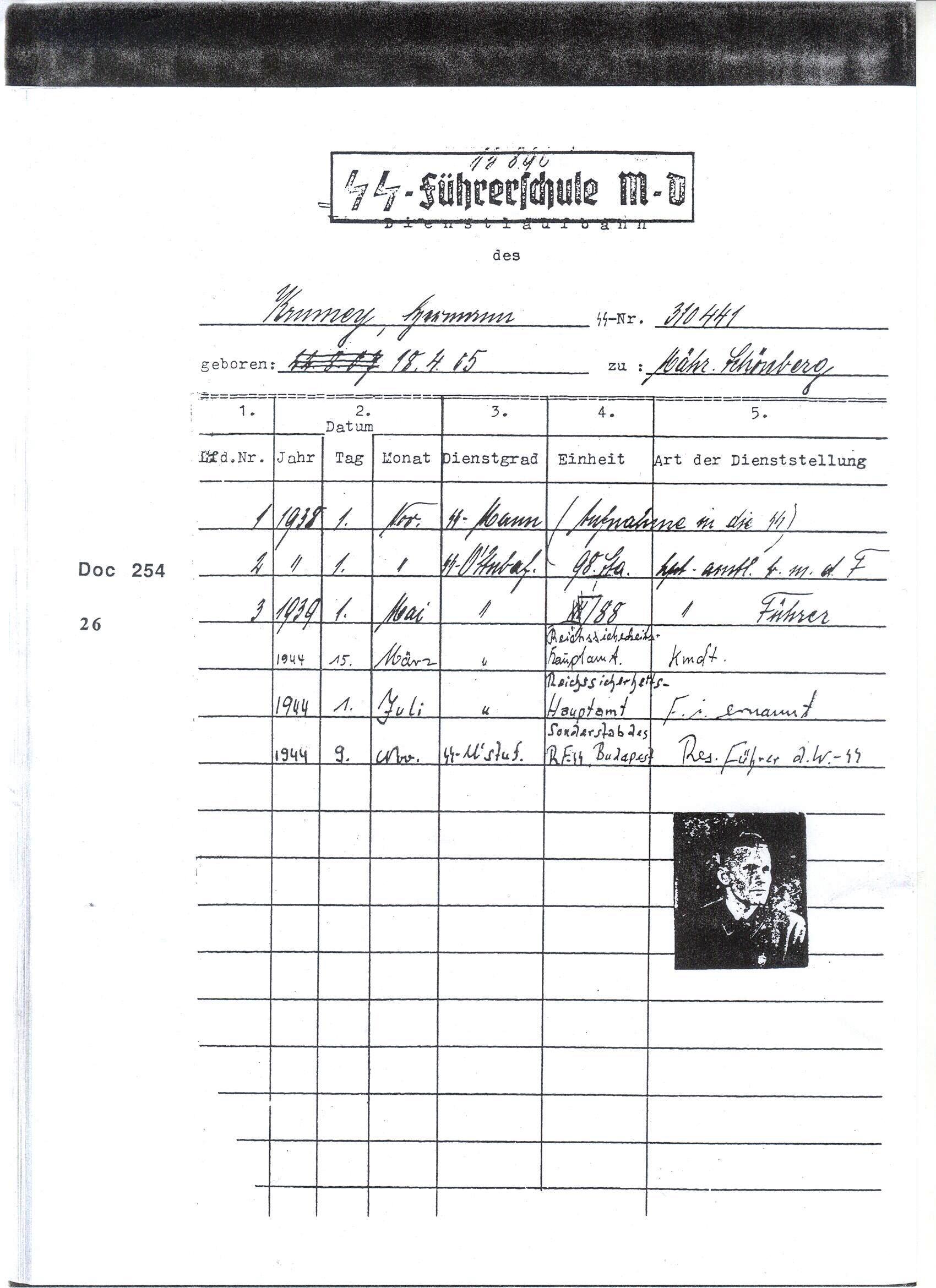 SS- Sturmbannfuhrer Born 1905 in Mährisch-Schönberg (Moravia), he joined the SS after the Anschluss. In November 1939 he was called up by the SS Head Office for Personnel, and was immediately dispatched to Poznan, where he was in charge of the programme to forcibly remove Poles from the Warthe District.