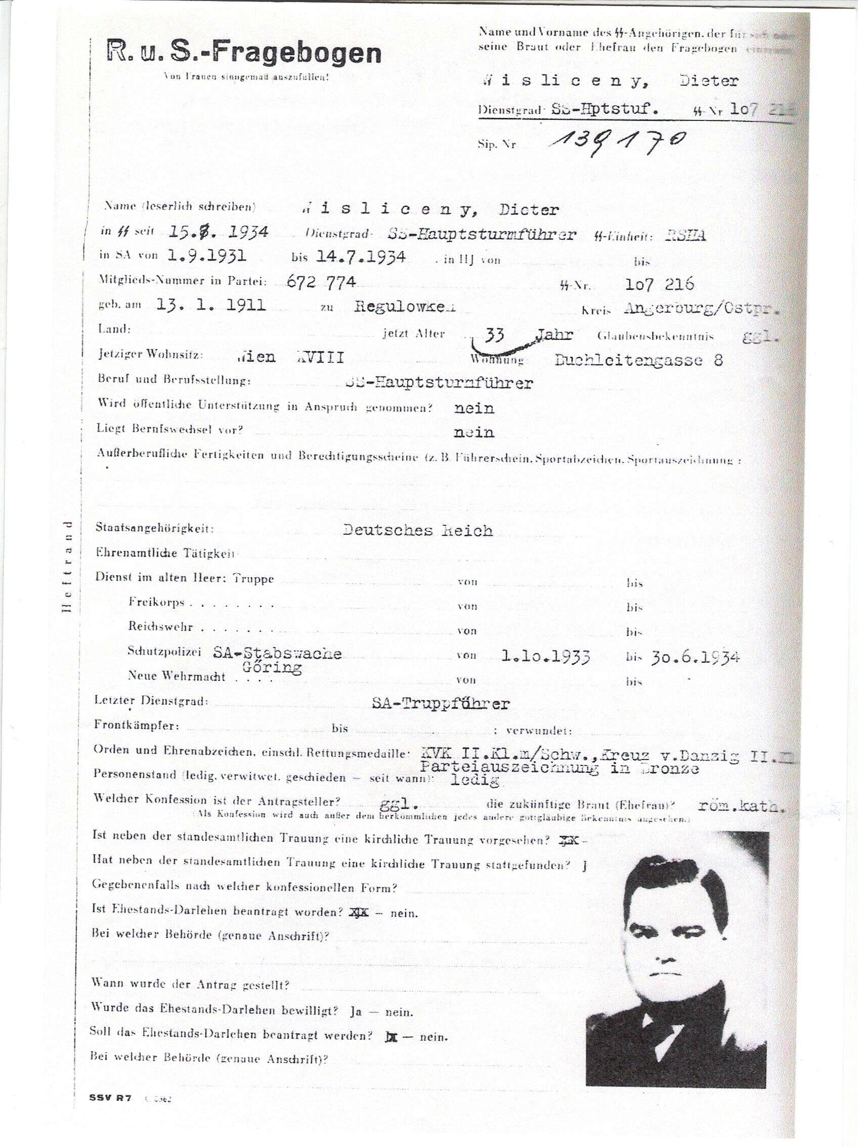 SS – Sturmbannfuhrer Born 8 J anuary 1913 in Erfurt, he was Eichmann’s permanent deputy in the RSHA. He worked, as did his brother, Hans, in the Central Office for Jewish Emigration in Vienna.
