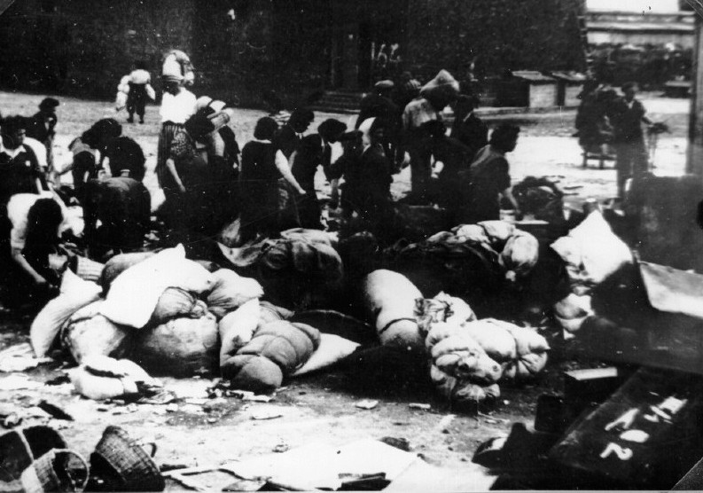 Old and worn clothes were addressed to the "TEXTILE FACTORY" at MEMEL, whereas the useable garments were dispatched to a collecting center in BERLIN. Gold, money, bank notes, and precious stones had to be handed over to the political section. Many of these objects were, however, stolen by the SS guards or by prisoners.