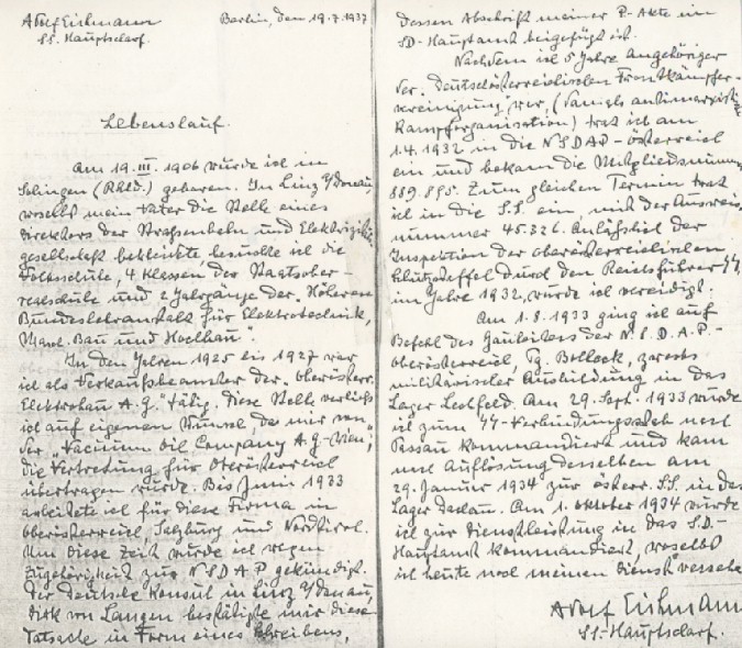 Sassen a journalist met with Eichmann over a five month period during 1956 and recorded sixty-seven tape reels, which produced a script of 695 pages, covering the Final Solution and Eichmann’s role in it. The project though ended with Eichmann dissatisfied over Sassen’s less than faithful transcriptions so he started to make a handwritten version. Extracts of the Sassen version was published in Life Magazine.